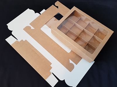 Коробка подойдёт для упаковки конфет, шоколада, безе, зефира, пирожных или другой выпечки высотой до 40 мм.