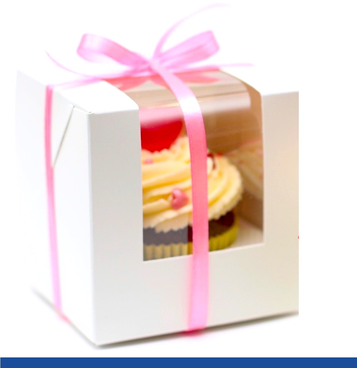 Коробка с окном для упаковки 1 капкейка, размер 100*100*110 мм - купить в интернет магазине с быстрой доставкой. Состоит из двух частей, коробки и вкладыша для капкейков. Окно - плёнка ПВХ. Доступны упаковки по 5, 25 и 50 шт. Цена указана за упаковку. Скидка на первый заказ и постоянным покупателям 5%.