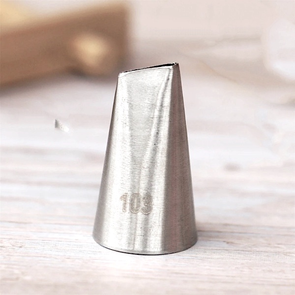 Кондитерская насадка прямой лепесток 103 - купить в интернет магазине. Длина прорези 10 мм. Быстрая доставка Почтой или СДЭК. 402 модели насадок в наличии на нашем сайте. Скидка на первый заказ и постоянным покупателям. Ищите промокод для скидки у нас на сайте!