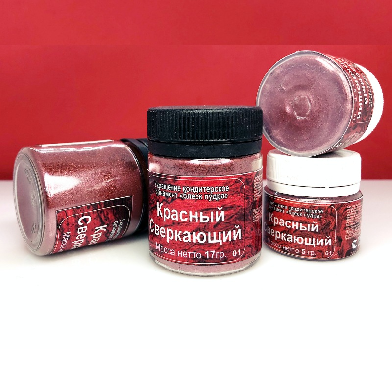 Плотный пищевой сухой блестящий краситель Сверкающий Красный, на основе Кандурина (Candurin®) без вкуса и запаха, №01.